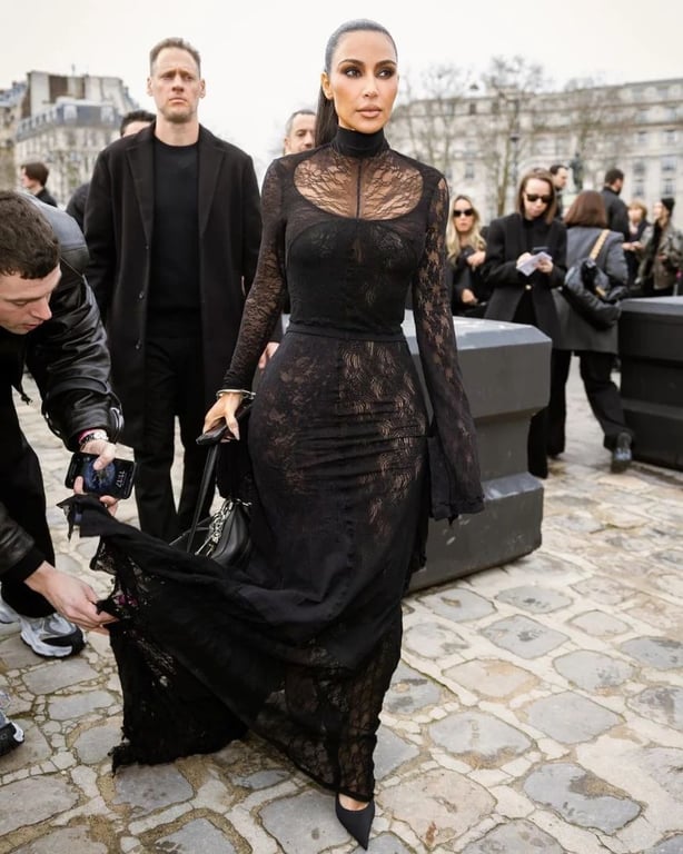 Американская телезвезда Ким Кардашьян посетила показ своего любимого бренда Balenciaga. Она выбрала кружевное платье, которое идеально подчеркнуло ее пышные формы.